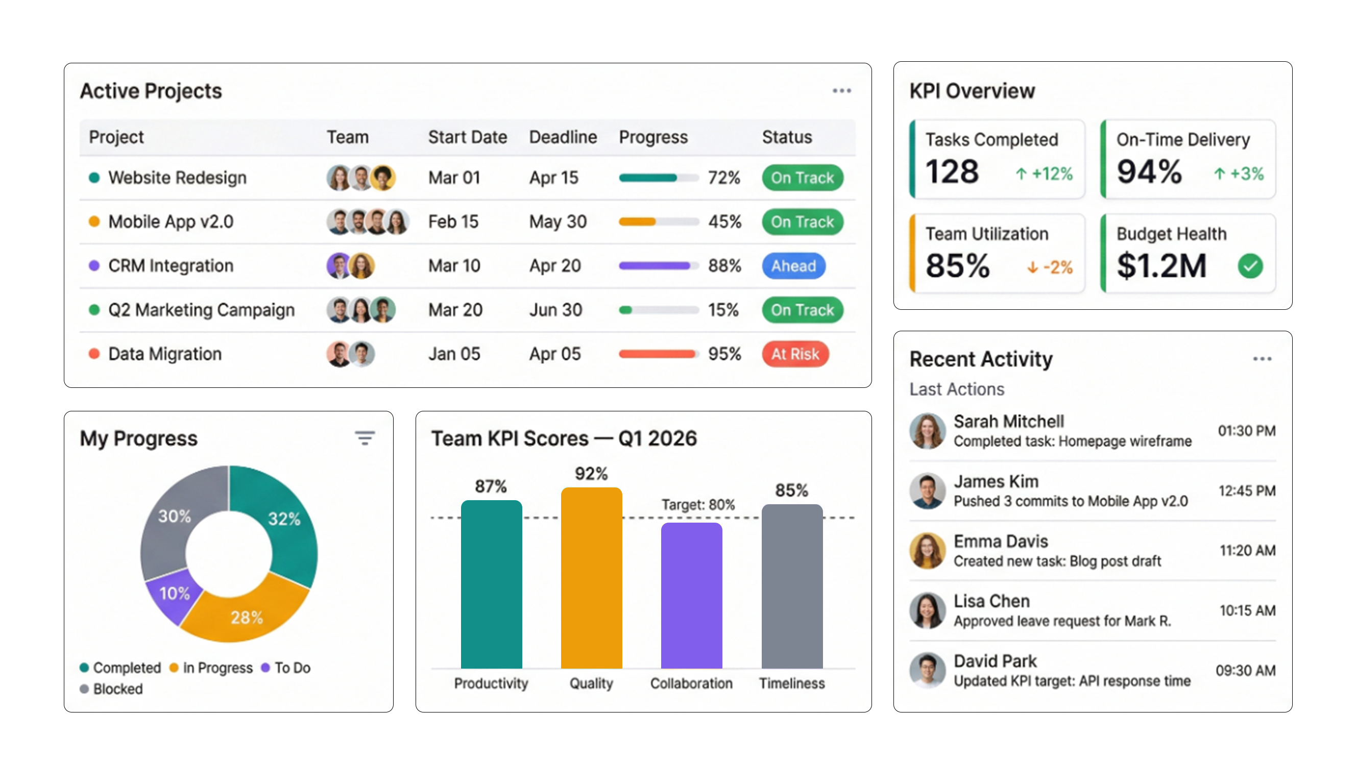 Plan tasks, track progress, and keep your team engaged — without switching tools.