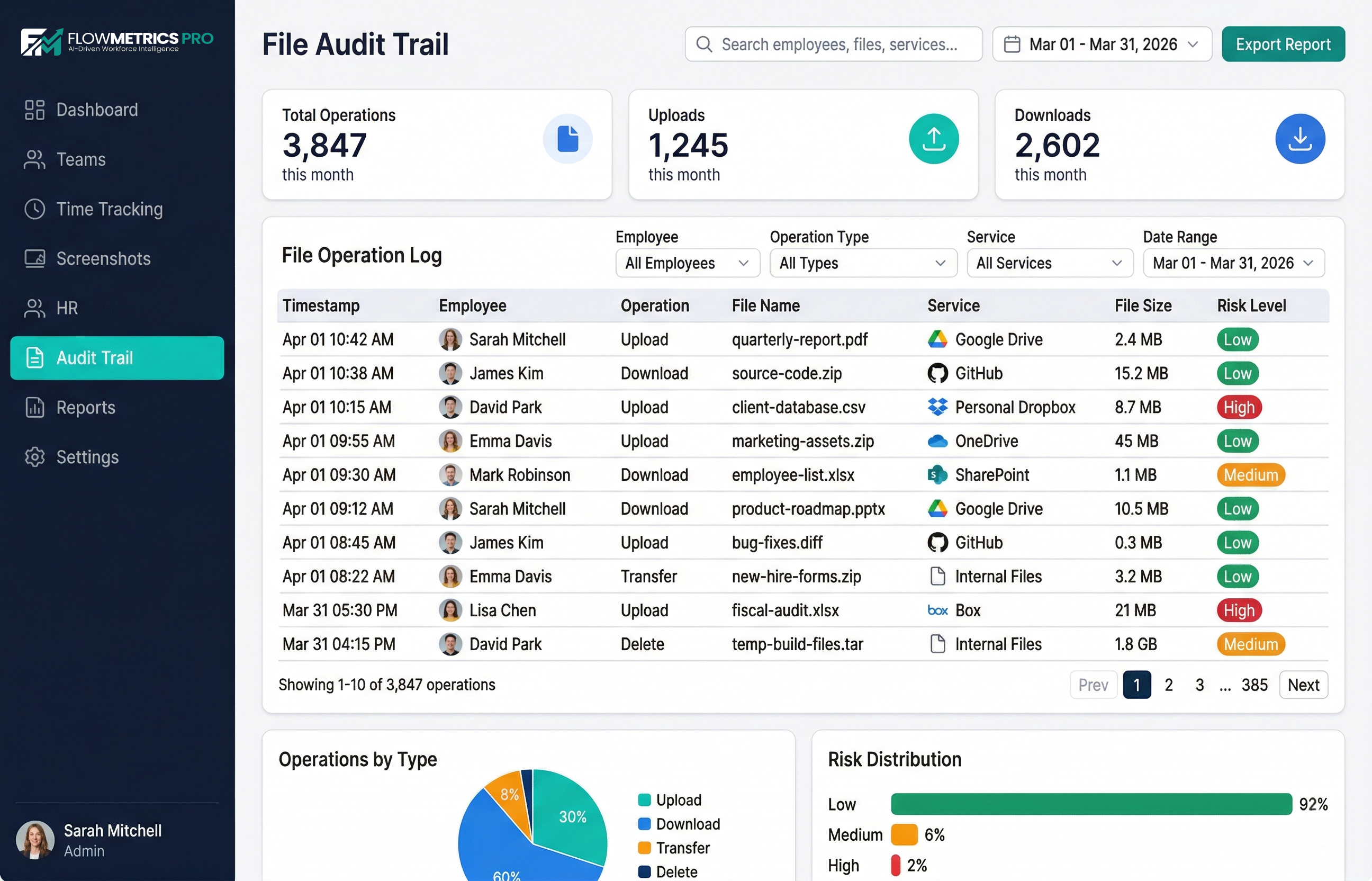 Track every file copy, move, and rename across local drives, network shares, and removable media.
